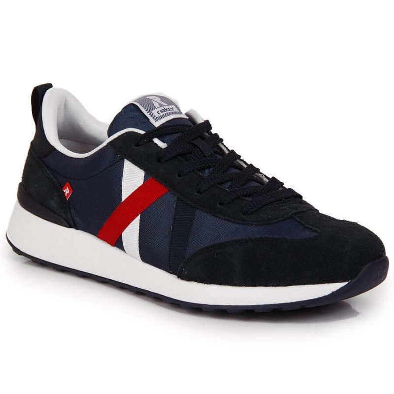 Elegant, bekväm och universell - Rieker M RKR539 sportskor är ett förslag för män som värderar komfort i vardagen. En låg, spets -upp -modell i en klassisk marinblå nyans med subtila, röda accenter fungerar både för avslappnade kläder och för en promenad eller urbana utgångar.