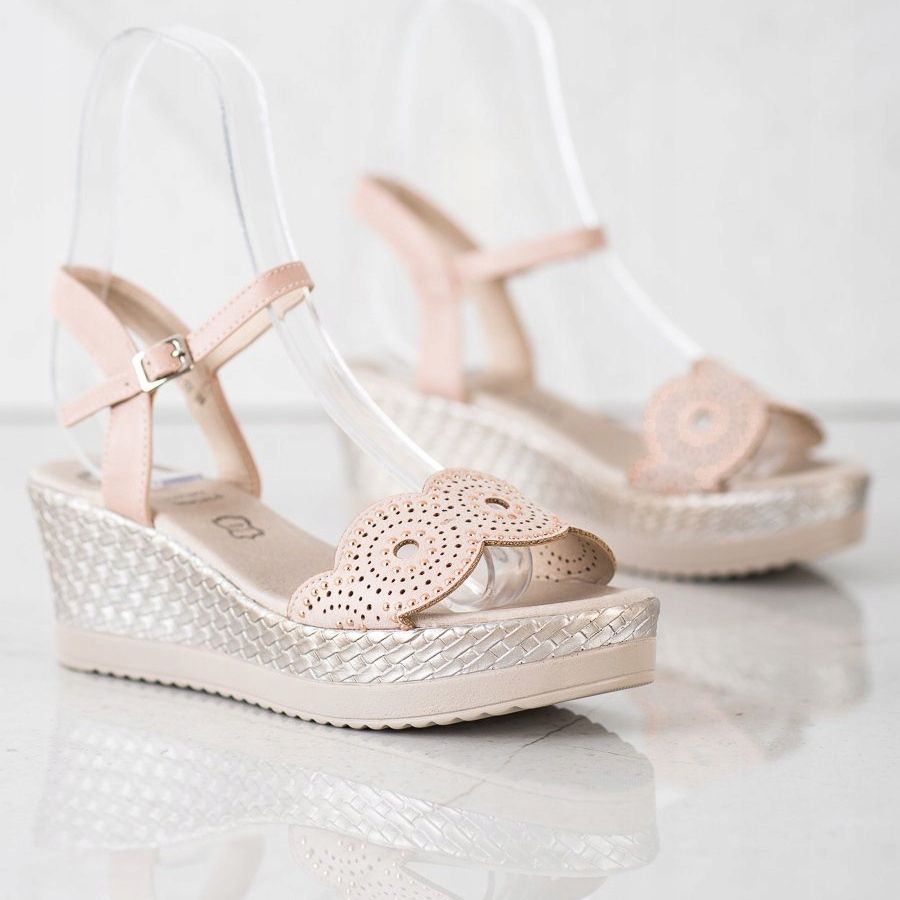 Det klassiska snittet och den neutrala beige färgen gör att dessa sandaler perfekt matchar en mängd olika stilar - från sommarklänningar till jeans. Den öppna stängningen och kilen ger stabilitet och komfort, vilket gör dem perfekta för vardagsbruk.
