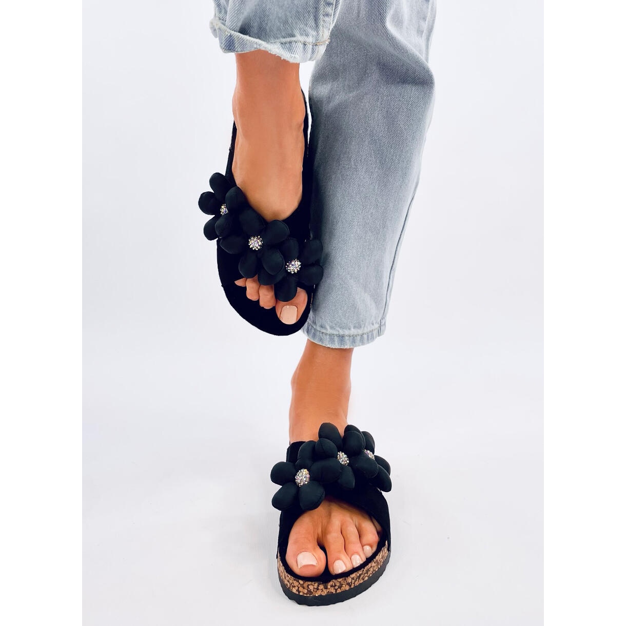 Inna marka Charss Svarta korkflip-flops med kuddblommor
