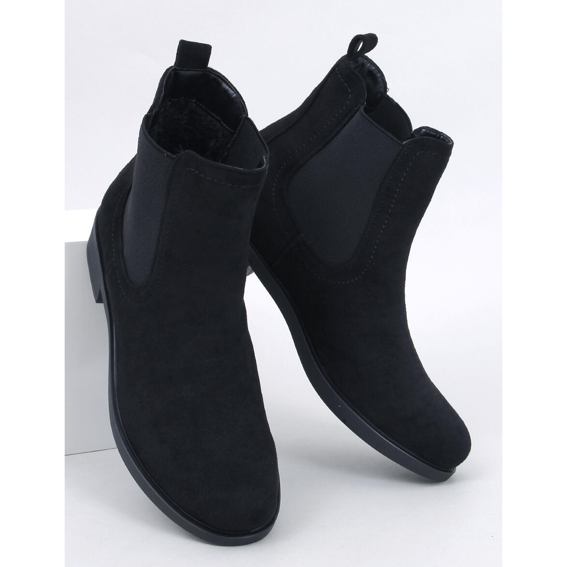 Skorna inre är fodrad med delikat päls, som garanterar komfort även under kallare dagar. En platt sula och en rund näsa gör dem till det perfekta valet dagligen, vilket möjliggör långa promenader utan rädsla för trötthet. Höjden för vristen betonar ytterligare elegans, och bristen på ett mönster gör att du enkelt kan kombinera dem med olika stiliseringar - från avslappnad till mer elegant.