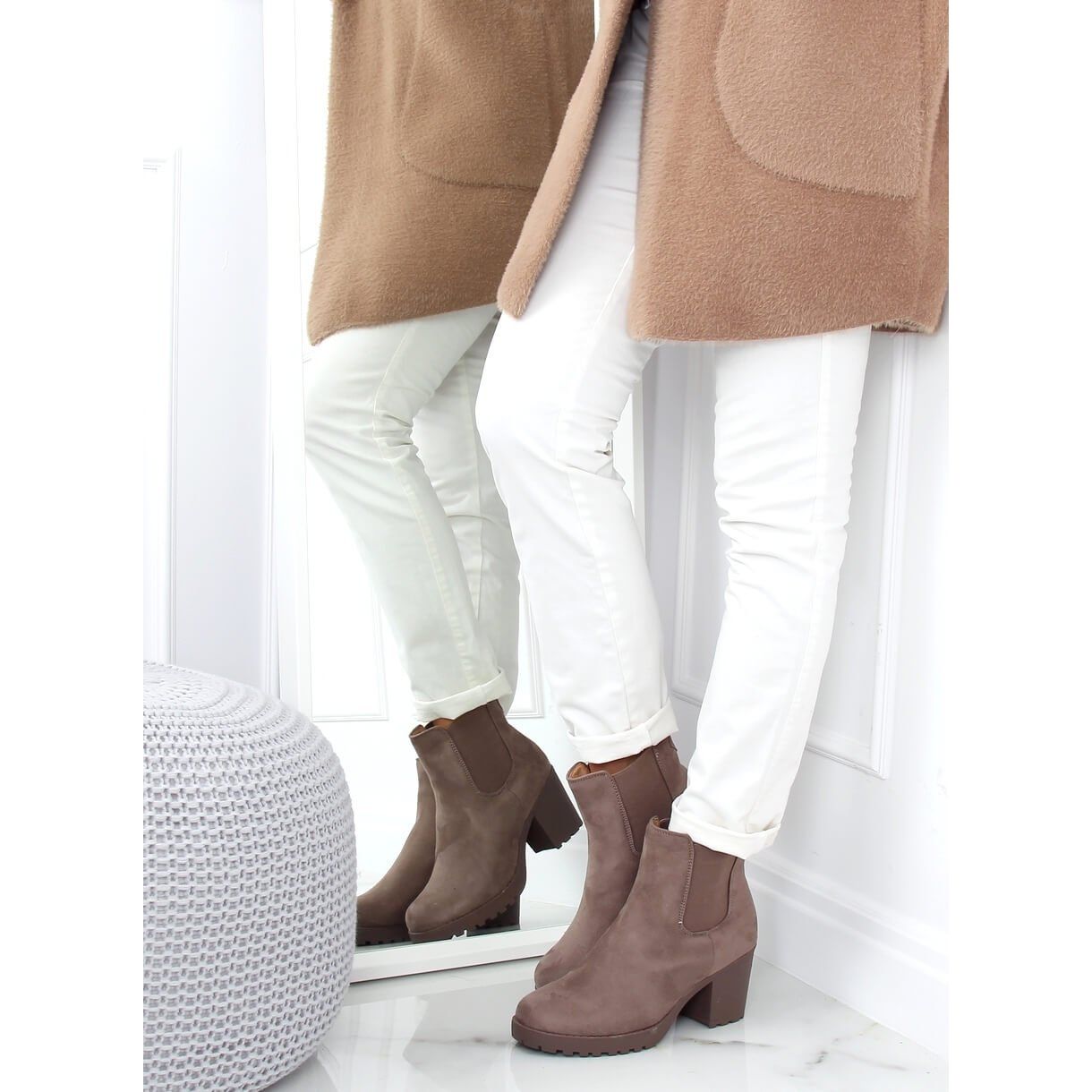 Chelsea-stövlar med bred klack i beige nyans, B2880FE-KB Khaki, är ett perfekt val för kvinnor som värdesätter komfort och elegant stil. Dessa stövlar är gjorda av ekologisk mocka av hög kvalitet och kombinerar ett klassiskt snitt med en modern, avslappnad design, perfekt för vardagsstyling.
