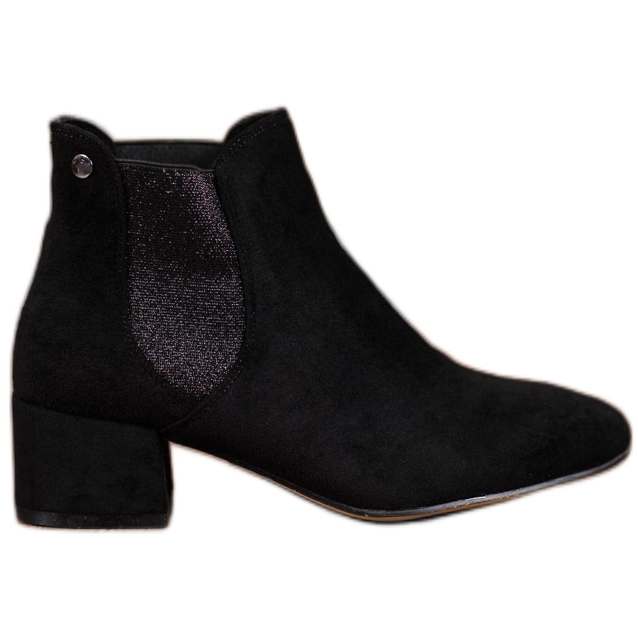 Upptäck elegansen och komforten som erbjuds av Ideal Shoes svarta Chelsea-stövlar med glitter. Dessa feminina ankelboots drar till sig uppmärksamhet med sin moderna design och glänsande accent som kommer att ge glans till alla stylingar. Tillverkade av ekologisk mocka av högsta kvalitet, de är ett utmärkt alternativ för personer som letar efter veganska lösningar inom skor.