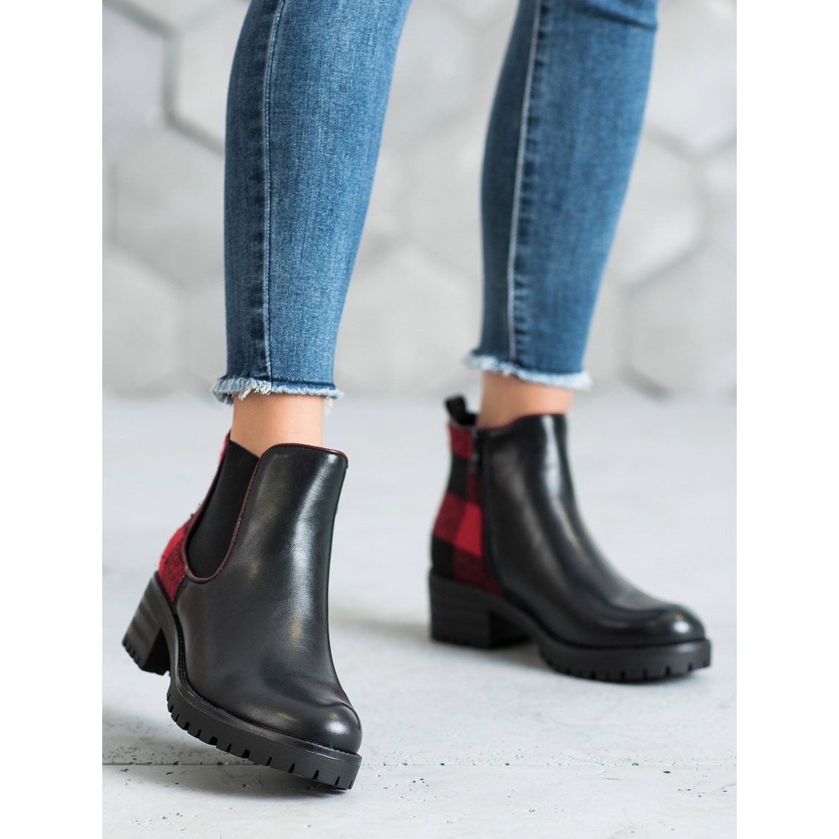 Upptäck höstens och vinterns unika stil med Seastar Chelsea-stövlar, som perfekt kombinerar elegans med vardagskomfort. Dessa ankelboots för kvinnor gör vilken outfit som helst till ett modemästerverk. Den svarta ovandelen på framsidan kombineras med ett original röd- och svartrutigt mönster på baksidan, vilket inte bara ger dem karaktär utan också gör dem extremt universella.