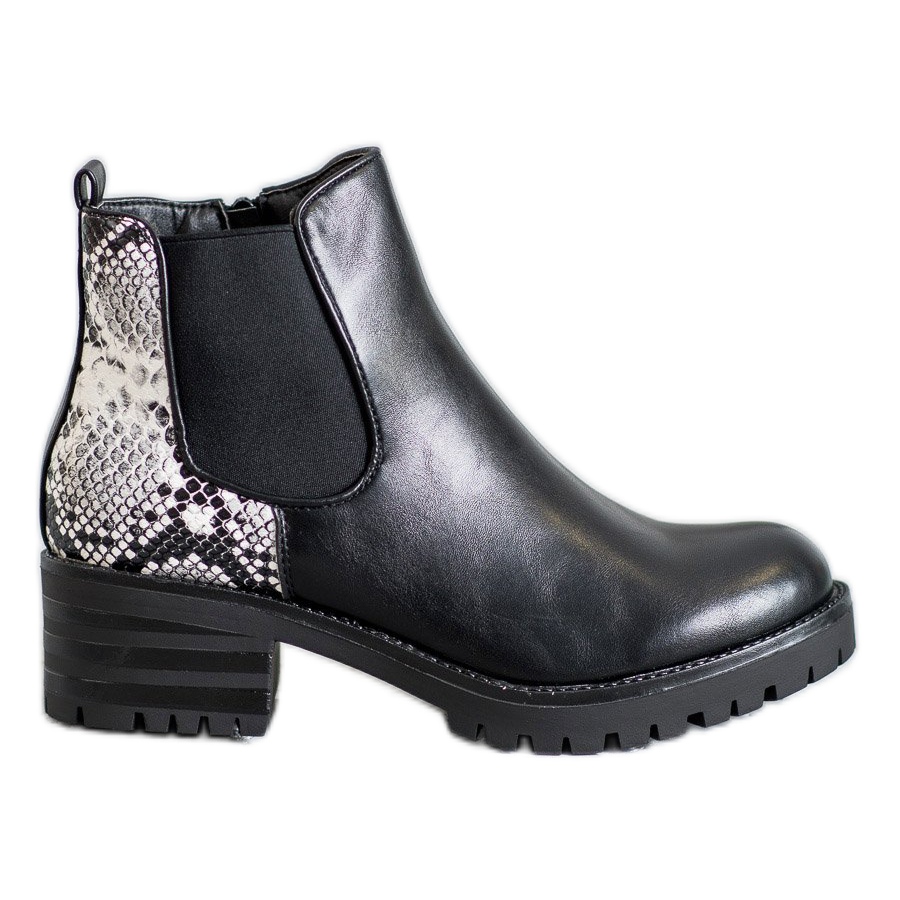 Seastar Chelsea stövlar med mönster är ett perfekt val för kvinnor som värdesätter både stil och komfort. Dessa eleganta skor i en klassisk svart färg framifrån blir en riktig modehit tack vare den ursprungliga baksidan dekorerad med ormskinnsmotiv. Dessutom garanterar ankellånga ovandelar och en praktisk svart elastisk insats komfort att bära och lätt att ta på.