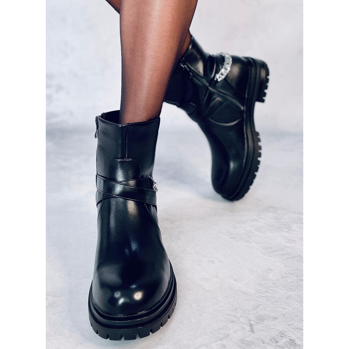 Inna marka Cindy Black ankelboots med kedja svart