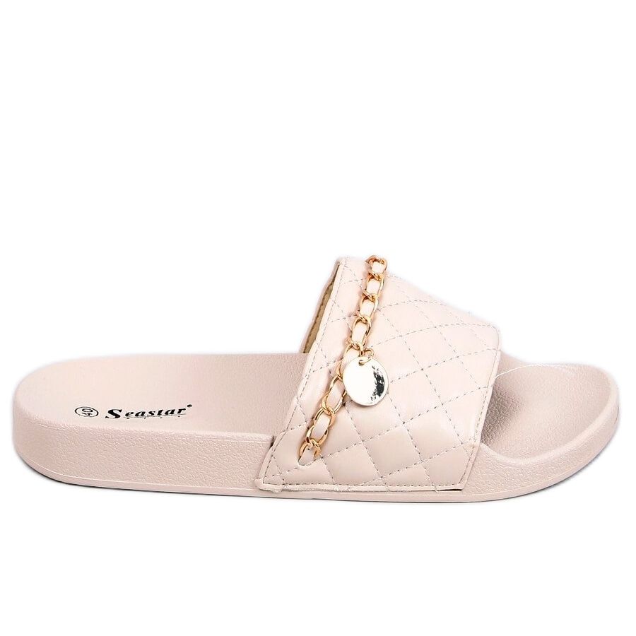 Vi presenterar beige flipflops CK189P, perfekta för varje kvinna som vill lägga till chic till sin sommargarderob. Denna unika modell kännetecknas av imponerande quiltning och en fashionabel kedja som kommer att dra till sig uppmärksamhet och få dig att känna dig som en riktig stjärna.