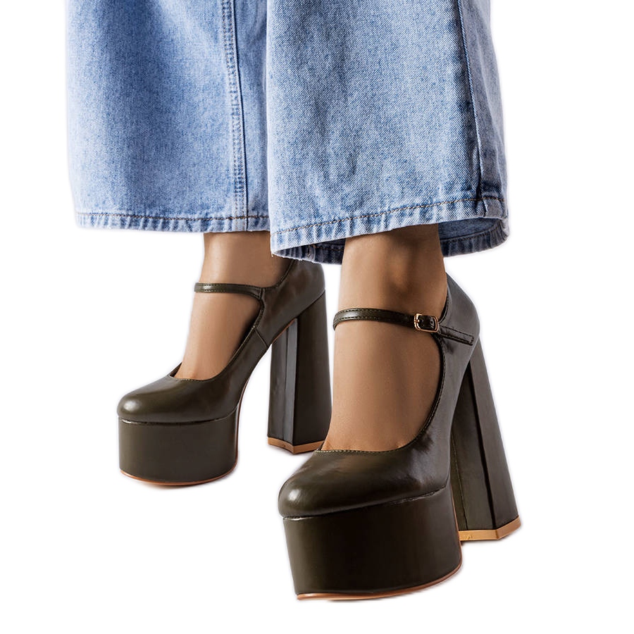 Gröna pumpar på en hög colle post - elegans och komfort för sommaren