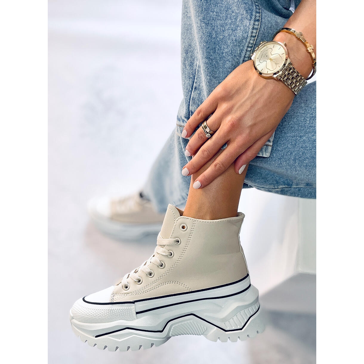 Dröj inte! Välj designat i trenden och investera i säsongens måste-ha. Välj komfort och stil med Corbel Beige high-top sneakers. Imponera på alla med ditt modekänsla!