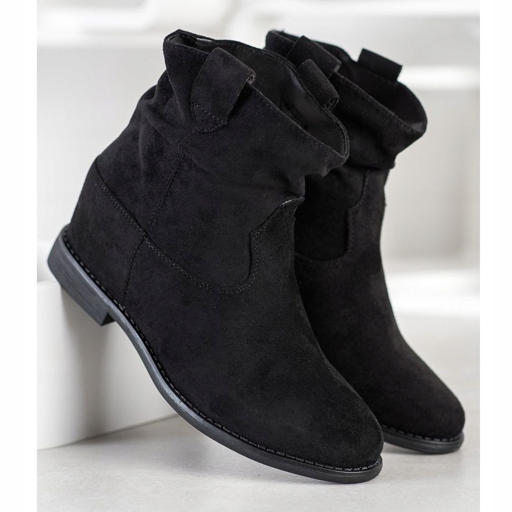 Skorna har en rund tå och en inbyggd, förstyvad häl, vilket säkerställer stabilitet och stöd för foten. En hög överdel till fotleden, 14-15 cm hög, ger elegans, och en dold kil, 7 cm hög, förlänger benen optiskt och framhäver figuren. Den släta sulan av syntetiskt material garanterar hållbarhet och grepp under olika förhållanden.