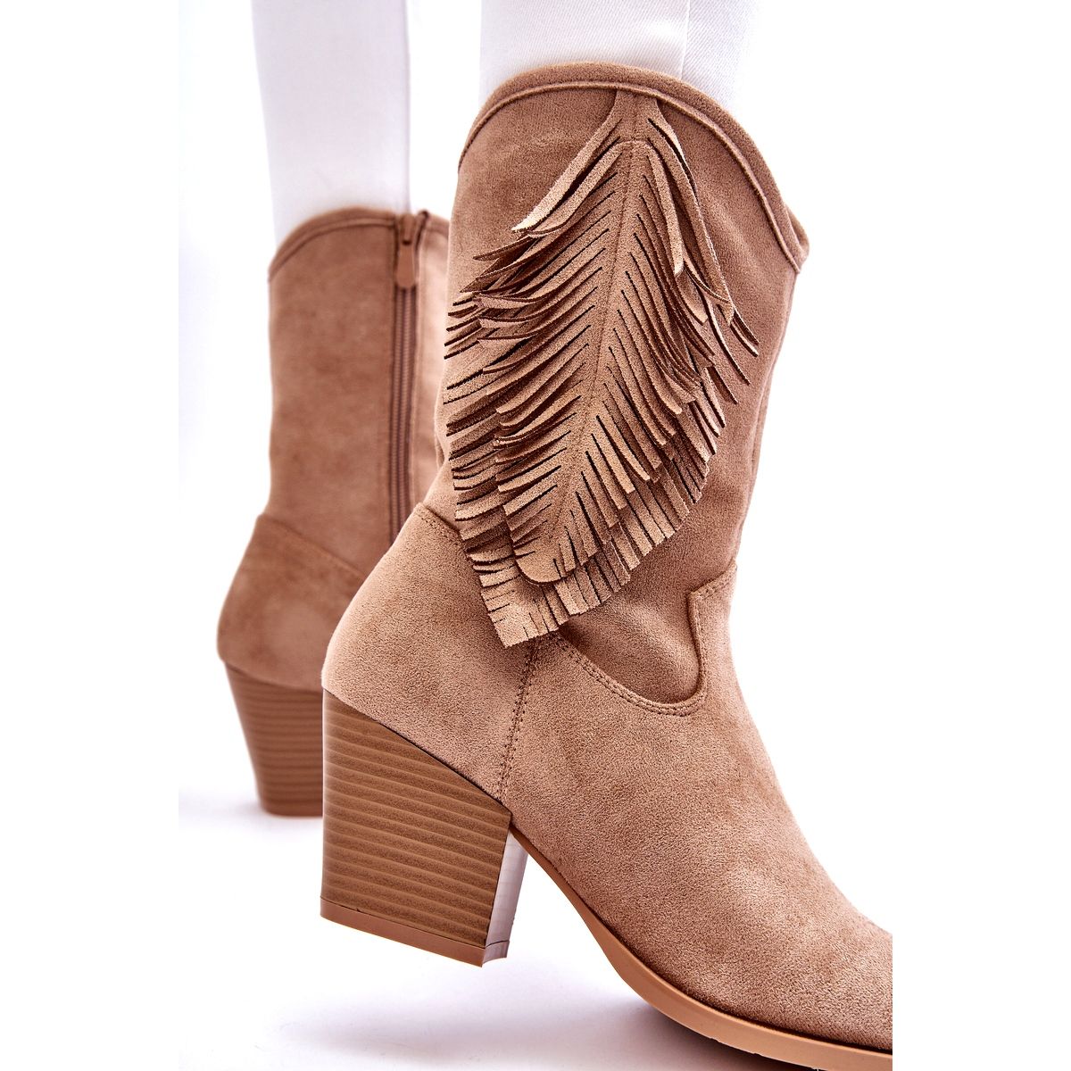 S.Barski S.Barski Cowboystövlar i låg mocka för kvinnor med fransar, beige