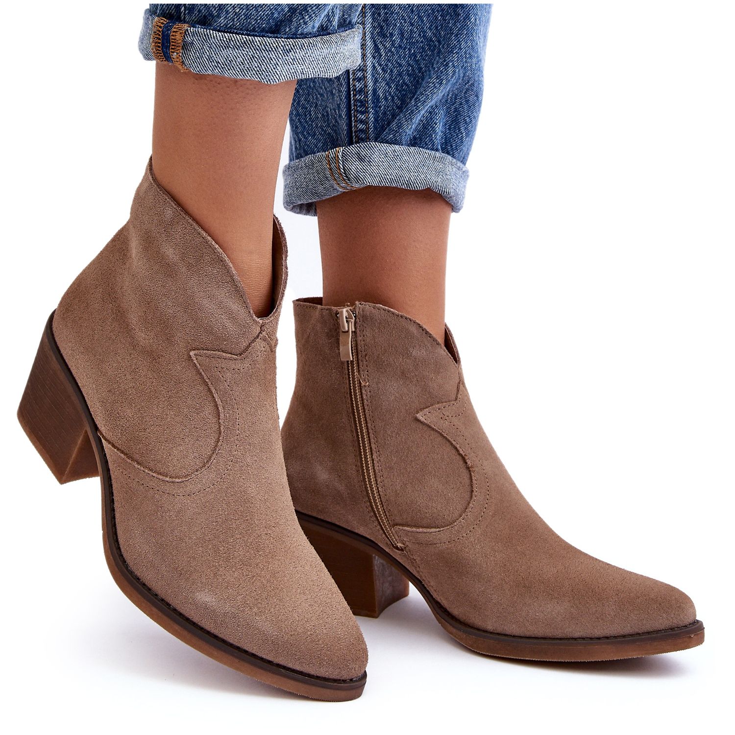 - Modell: Cowboystövlar i mocka med dragkedja