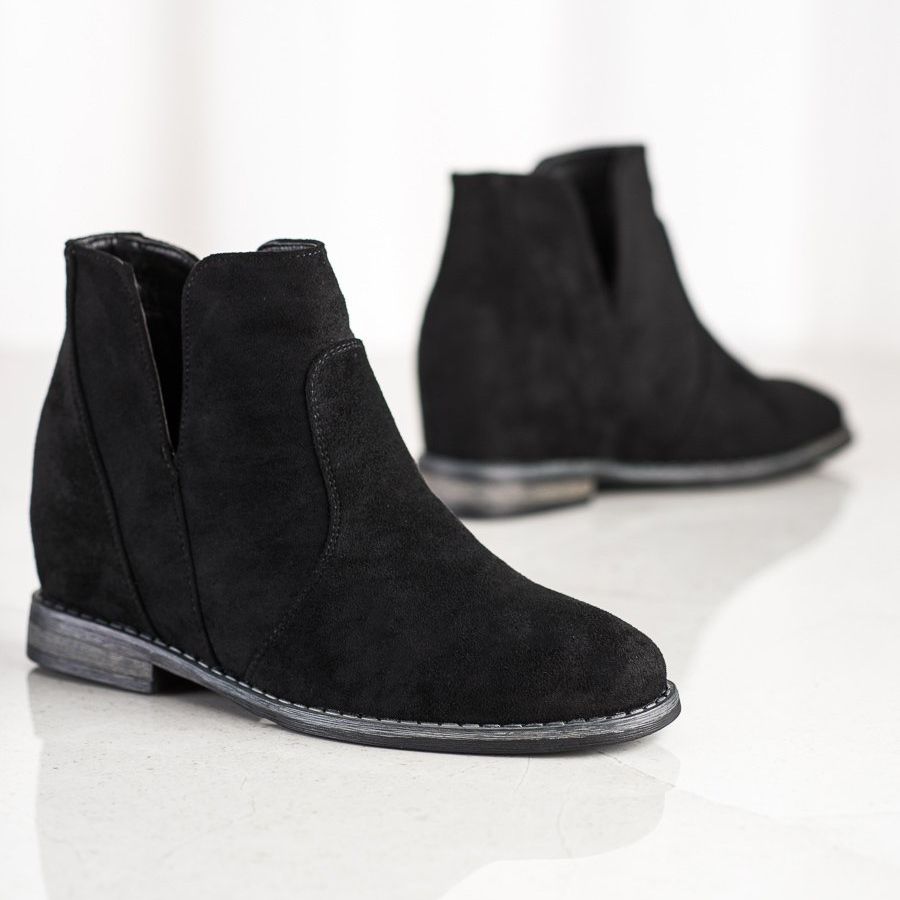Upptäck elegans och komfort med S.BARSKI wedge cowboystövlar i klassisk svart. Dessa unika ankelboots för kvinnor kombinerar avslappnad stil och vardagskomfort, perfekt för höst och vinter. Den inbyggda och förstyvade hälen ger tillräckligt stöd, och höjden på den övre delen över vristen ger karaktär till varje styling.