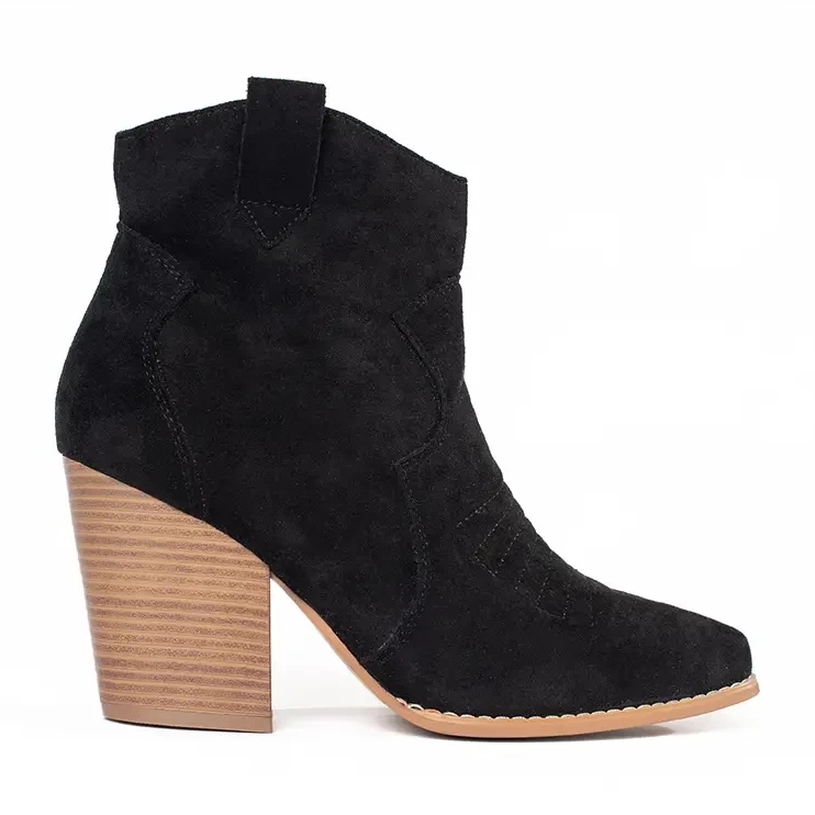 Bella Paris presenterar cowboystövlar som lätt kommer att passa smaken hos älskare av tidlös elegans med en hint av vilda västern. Dessa svarta högklackade cowboystövlar är perfekta för kvinnor som värdesätter både stil och komfort. Den 8,5 centimeter långa blockhälen tillför chic samtidigt som den säkerställer stabilitet vid varje steg.