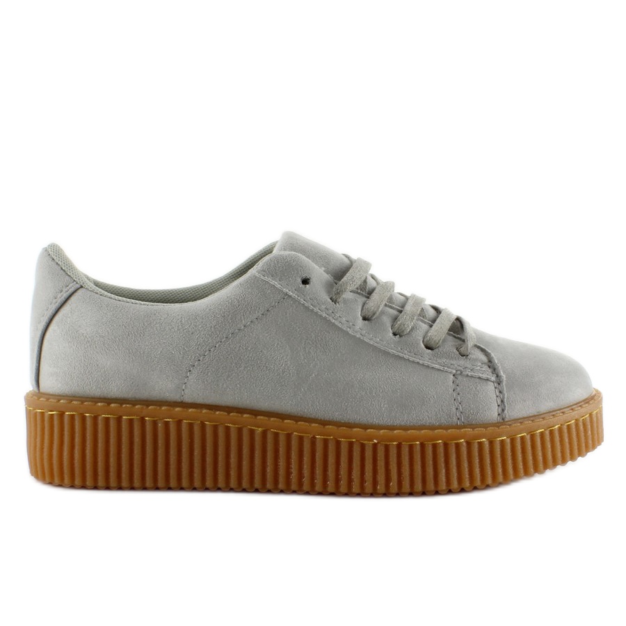 Creepers On a Rubber Sole K-95 i grått är en riktig hit av den nya säsongen, som lockar uppmärksamheten från älskare av fashionabla och bekväma skor. Dessa snygga creepers, gjorda av köttig och behaglig mocka att ta på, garanterar komfort och ett fantastiskt utseende. Ställda på en hög gummisula, 3 cm hög, är de perfekta för vardagsstyling och ger dem lite karaktär.