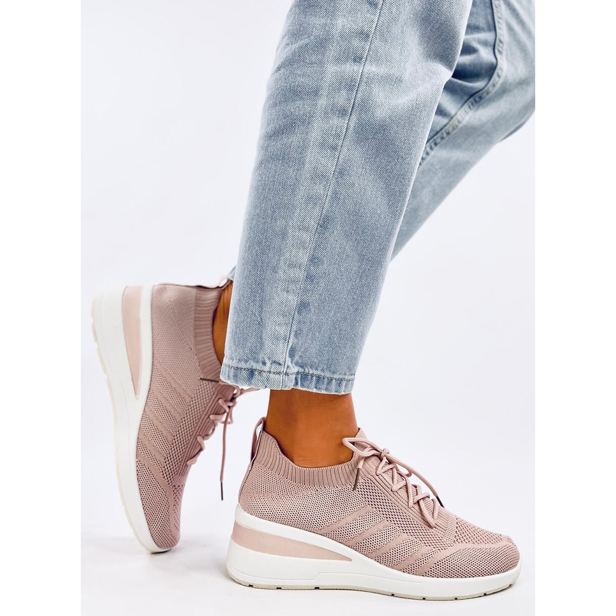 Dessa rosa sneakers hålls i en minimalistisk design, som perfekt passar in i vardagliga trender. Tillverkade av flexibelt, strumpstyg, de anpassar sig perfekt till foten och säkerställer komfort under dagen. En 5 cm hög bänk ger dem en subtil charm, och garanterar samtidigt stabilitet och komfort när du går.