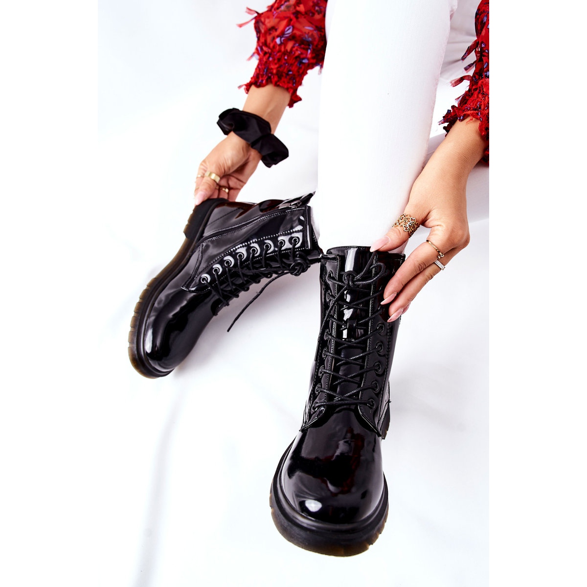 Stövlarna når upp till vaderna, vilket ger dem en elegant karaktär och passar perfekt för en mängd olika stilar. Klassisk snörning och en extra dragkedja på sidan säkerställer inte bara att det är lätt att köpa, utan också en perfekt passform till foten. Tack vare den runda tån och en platt 3 cm klack är stövlarna extremt bekväma, vilket gör dem till ett idealiskt val för dagligt bruk.