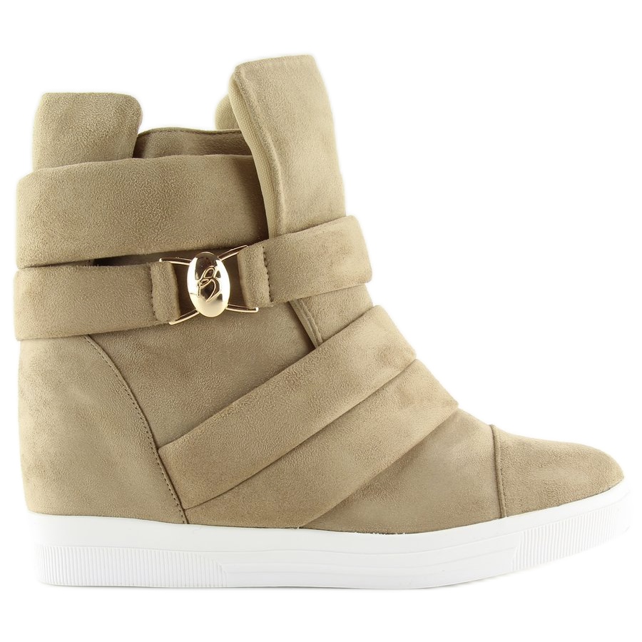 Upptäck unik stil och komfort med beige damsneakers H6507 Camel! Dessa fashionabla skor med en 7 cm hög dold kil är den perfekta kombinationen av elegans och sportig dynamik. Breda ränder som sveper sig runt ovandelen, dekorerade med en subtil gulddetalj, ger dem en unik karaktär som väcker uppmärksamhet. Den vita sulan framhäver inte bara det sportiga utseendet, utan säkerställer också komfort under användning.