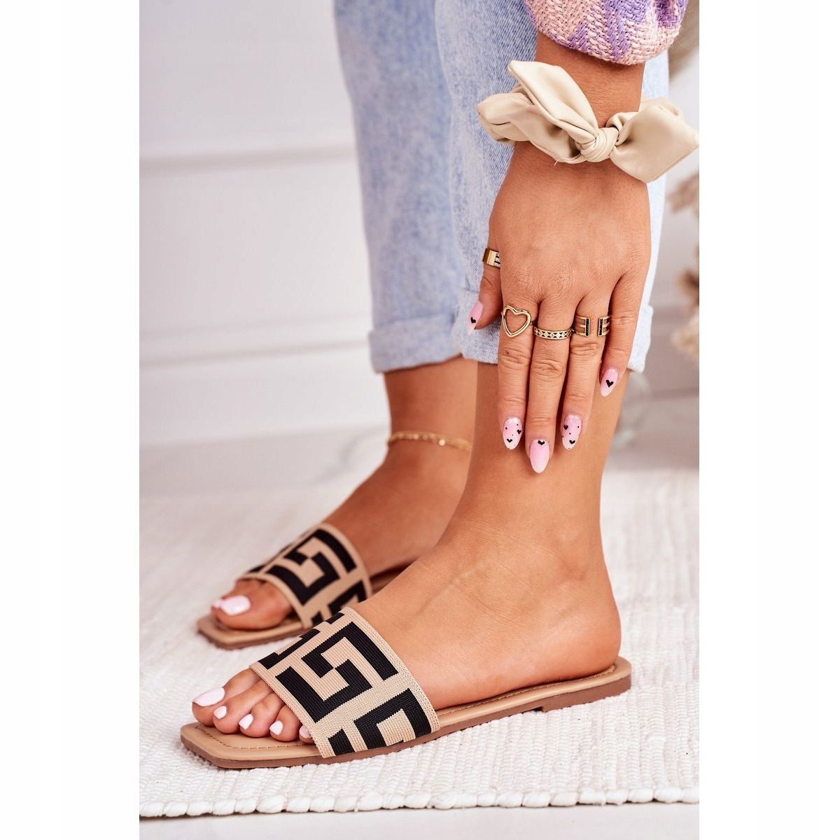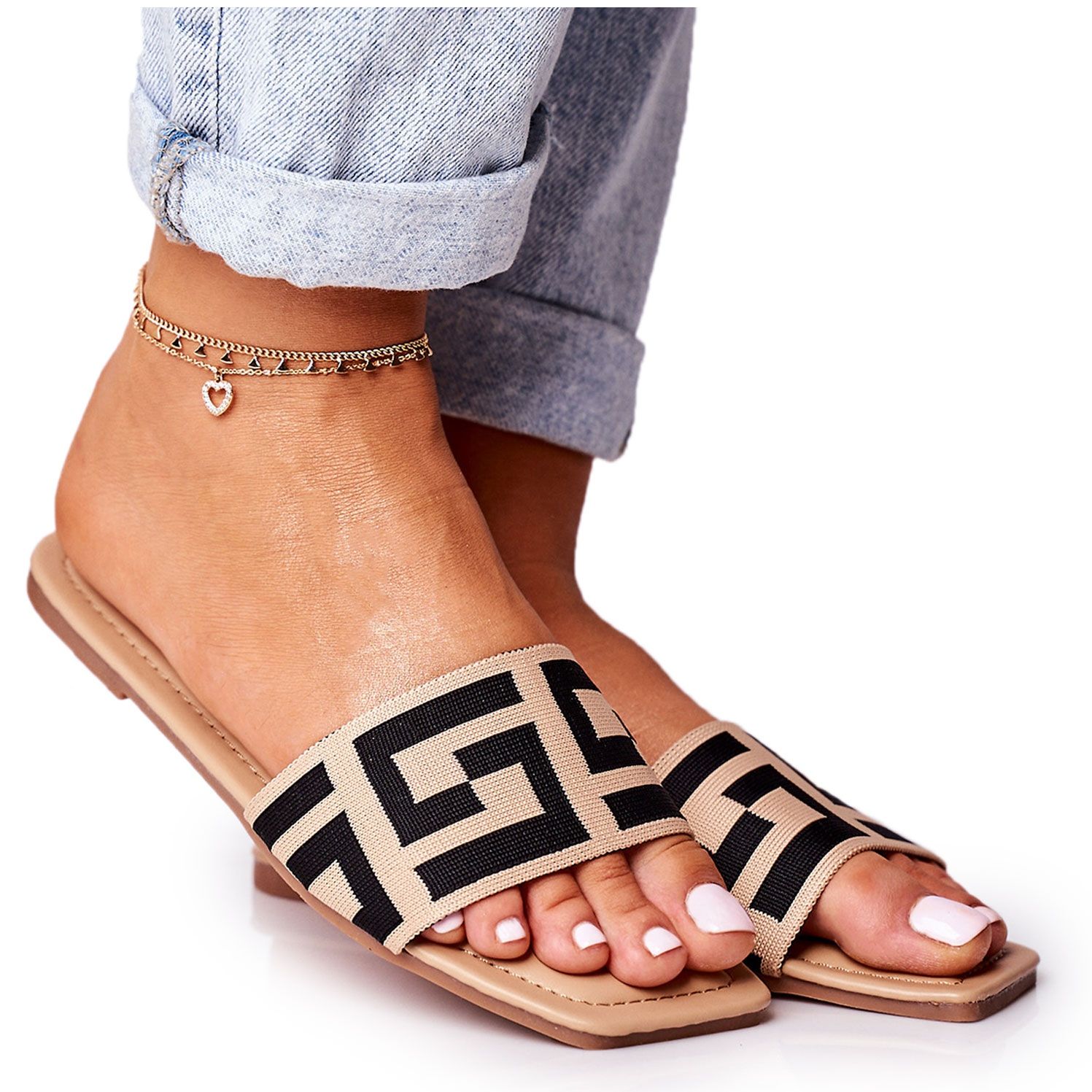 Detaljer: Dam klassiska Beige Melinda tofflor svart