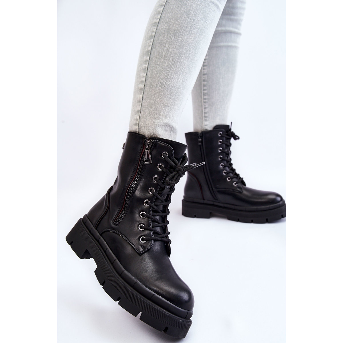 Information: PG1 Dam Läder Lace Up Trapper Boots Svart Shanna