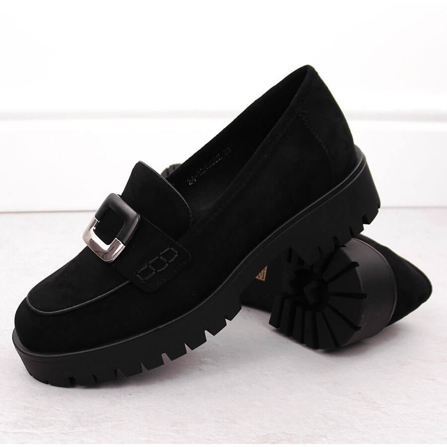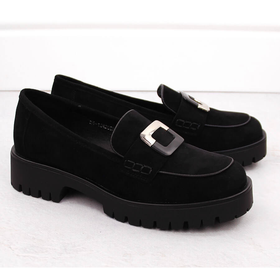 Detaljer: Dam loafers med dekoration, svart mocka Potocki 12420