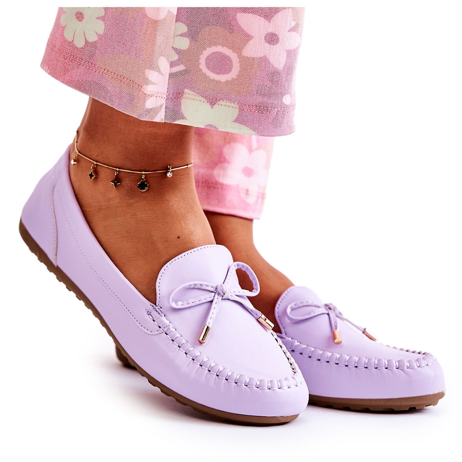 Vi presenterar eleganta och snygga dam PG1 mockasiner med en lila rosett. Dessa klassiska skor är omsorgsfullt gjorda av ekologiskt läder, vilket gör dem inte bara estetiska utan också miljövänliga. Den lila färgen ger dem en unik karaktär, och den subtila rosetten på framsidan framhäver deras feminina charm.