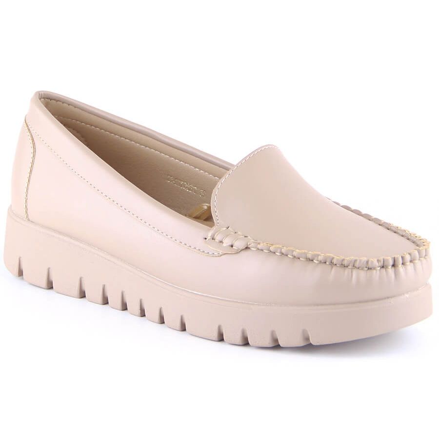 Beżowe Potocki YQ21020 plattformsloafers för kvinnor är det perfekta valet för kvinnor som värdesätter komfort och stil. Dessa eleganta mockasiner utmärks av sin moderna design och eleganta beige färg, som kommer att vara perfekt för många stilar, både vardagliga och för speciella tillfällen.