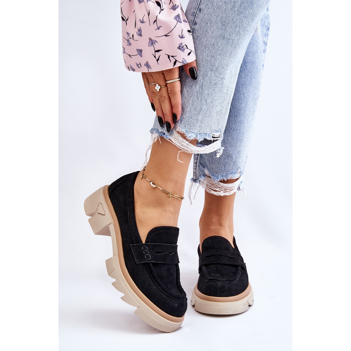 Dessa mockasiner har en massiv, platt 5 cm hög klack och en 3 cm ökning av plattformen, vilket säkerställer stabilitet och komfort under hela dagen. Insidan av skon är avslutad med ett mjukt inlägg av naturligt läder, vilket gör att gå i dessa mockasiner till ett sant nöje.