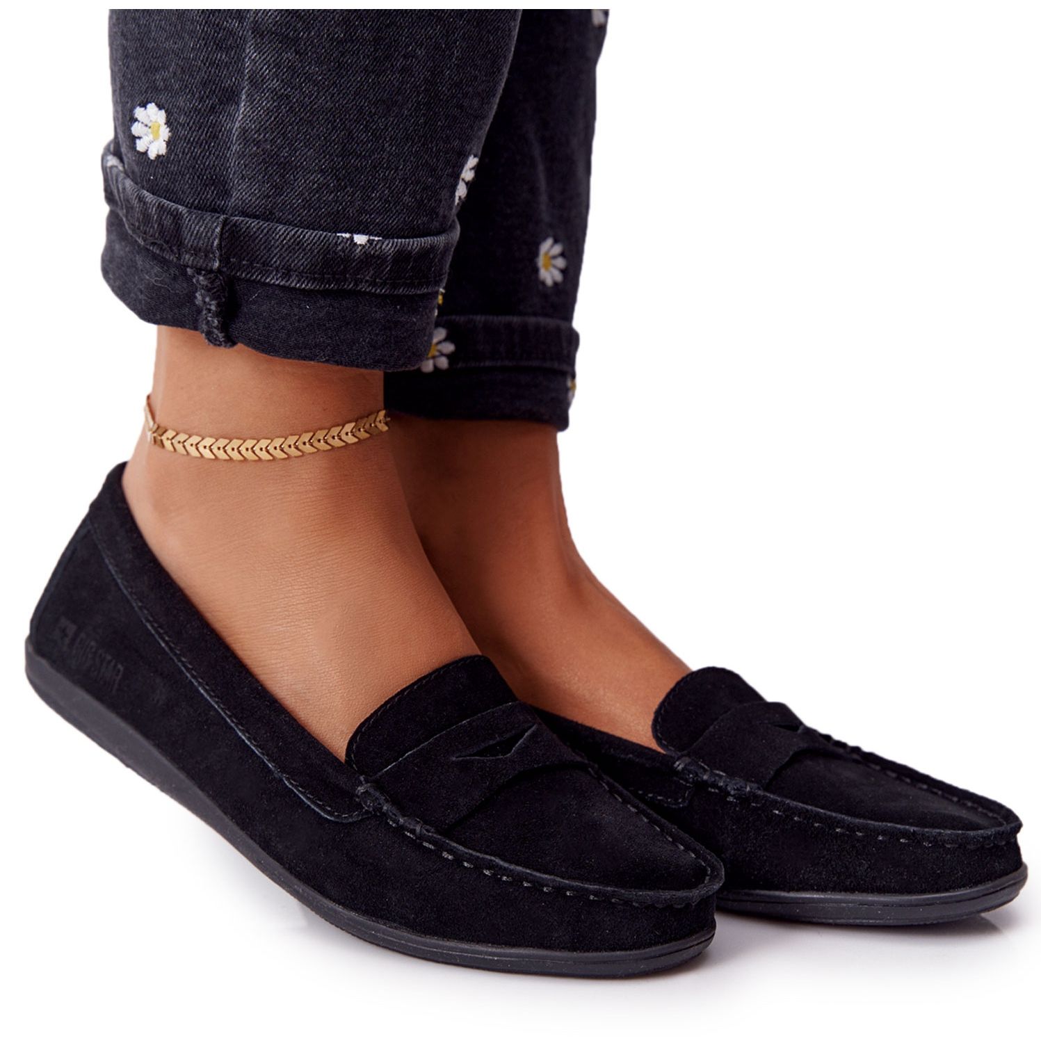 Vi presenterar eleganta dammockasiner Big Star HH274662 i svart, som är en perfekt lösning för kvinnor som värdesätter komfort och en moderiktig look. Dessa klassiska mockasiner är gjorda av högkvalitativ naturlig mocka, vilket säkerställer utmärkt hållbarhet och estetik.