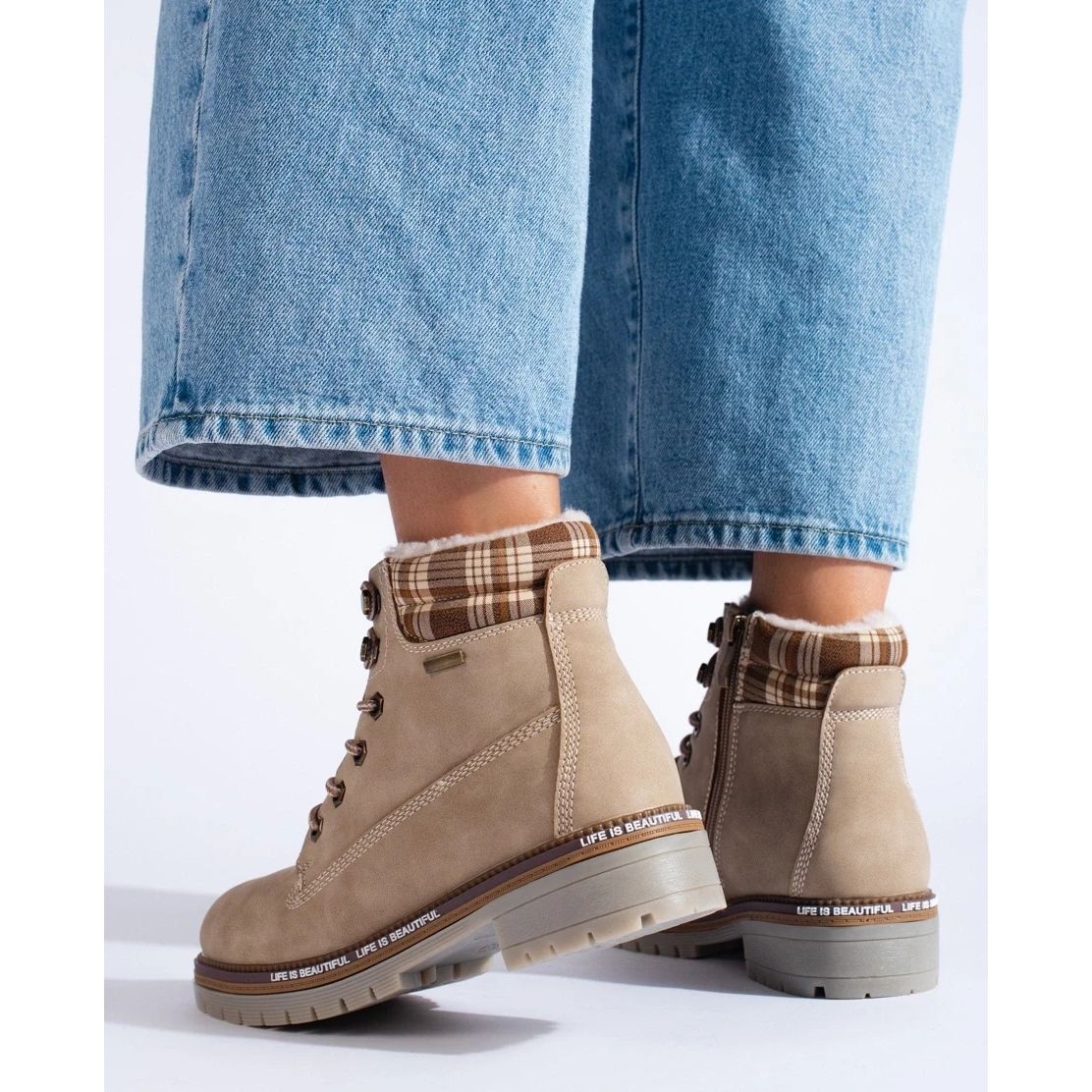 Eleganta och praktiska Shelovet -fällor är ett förslag för kvinnor som värderar komfort och en varm, avslappnad stil. Tillverkade av ekologiskt läder i den ljusbruna skuggan kombinerar de en sportig karaktär med stadsstil - perfekt för svalare dagar.