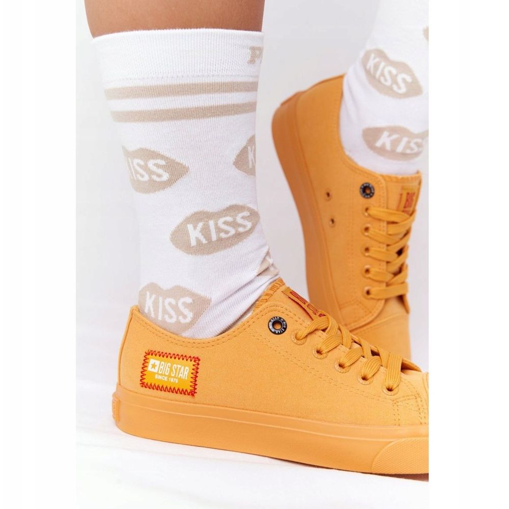Kvinnors Big Star HH274134 sneakers i en solig gul nyans är ett måste för våren/sommarsäsongen. Den klassiska, enkla snitten blandar sig bra med både jeans och sommarklänningar - tillägg av friskhet och energistyling. Modellen är gjord av andningsbart tyg, vilket gör skorna lätta och bekväma under vardagskläder.