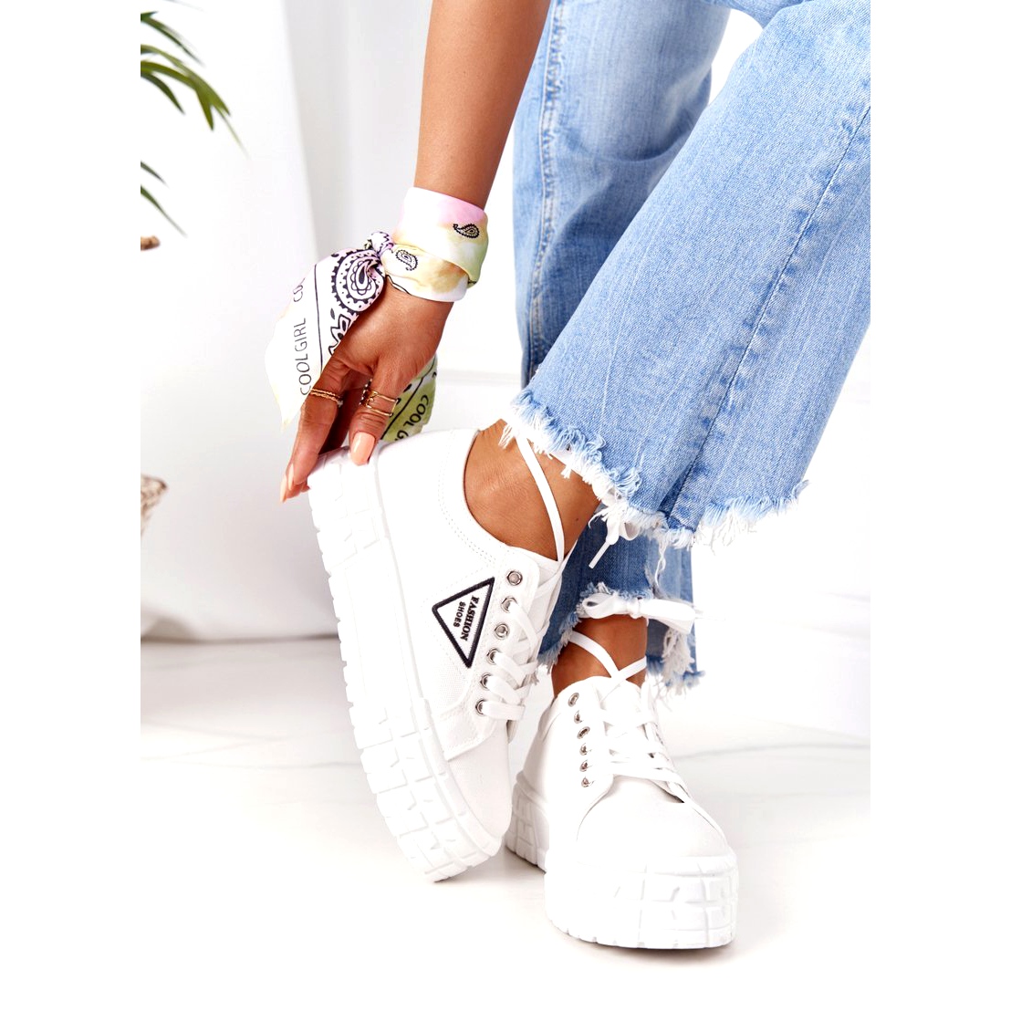 Platformsneakers för kvinnor White Big City Life är ett idealiskt erbjudande för alla älskare av moderiktiga och bekväma skor. Dessa snygga sneakers har en stor gummiplattform som inte bara fångar ögat, utan också ger utmärkt dämpning när du går. Gjorda av högkvalitativa material, sneakers anpassar sig perfekt till formen på foten, vilket gör dem bekväma även när de bärs hela dagen.