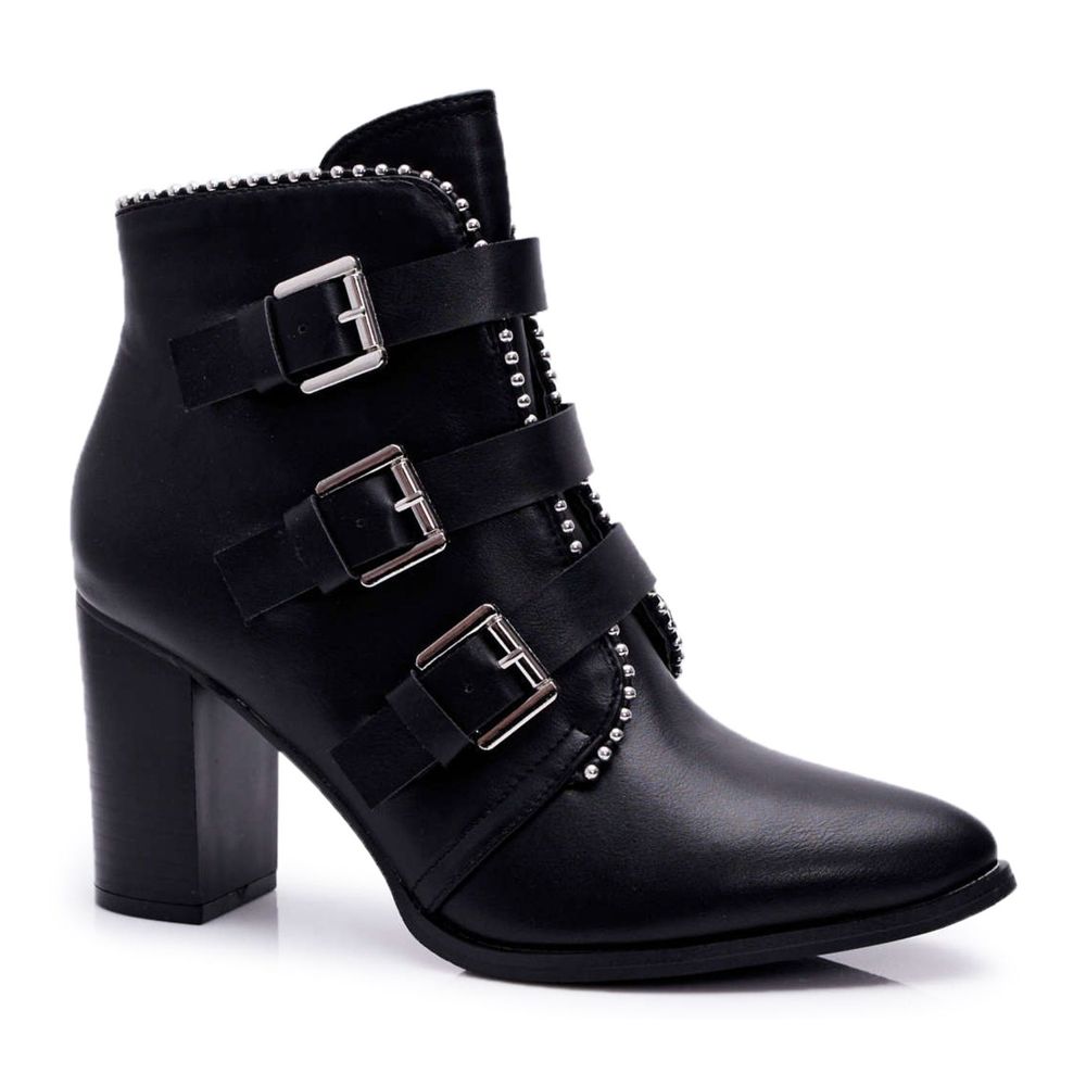 Detaljer: FJ1 Dam stövlar på en klack med spännen svart Finbas