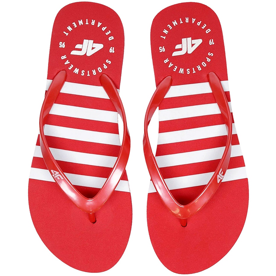 Ett lätt och bekvämt förslag från 4F -röda flip -flops (flip -flops) utformade för strand, pool och vardaglig sommaranvändning. Gummiband och skumsula EVA säkerställer komfort och snabb vård.
