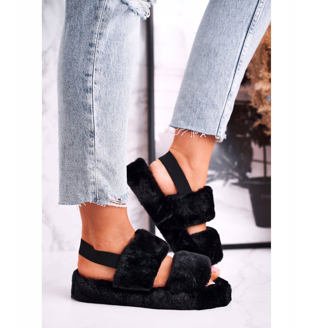 Detaljer: FJ1 Dam tofflor på plattformen päls svart bomullsgodis