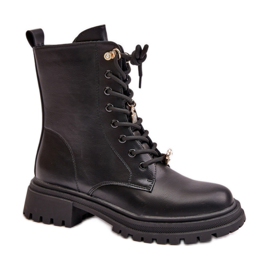 Stövlarna är utrustade med ett praktiskt sidolås, vilket gör det lättare att ta på sig och ta av, och ytterligare snörning dekorerade med charmiga stift fångar ögat och ger hela en unik karaktär. Den isolerade tyginredningen innebär att dina fötter inte bara ser snygga ut, utan också kommer att skyddas ordentligt mot kylan.