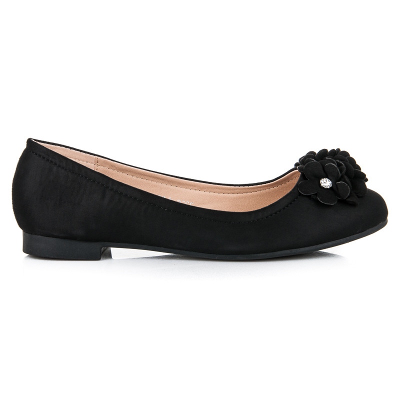 Upptäck charmen och elegansen som erbjuds av Vices dambalettlägenheter med blommor i en klassisk svart färg. Dessa perfekta komplement till varje styling är gjorda av högkvalitativt ekologiskt läder, vilket gör dem inte bara attraktiva utan också miljövänliga. Ballerinans insida är fodrad med naturligt läder, vilket säkerställer bärkomfort och säkerställer ordentlig ventilation av fötterna.