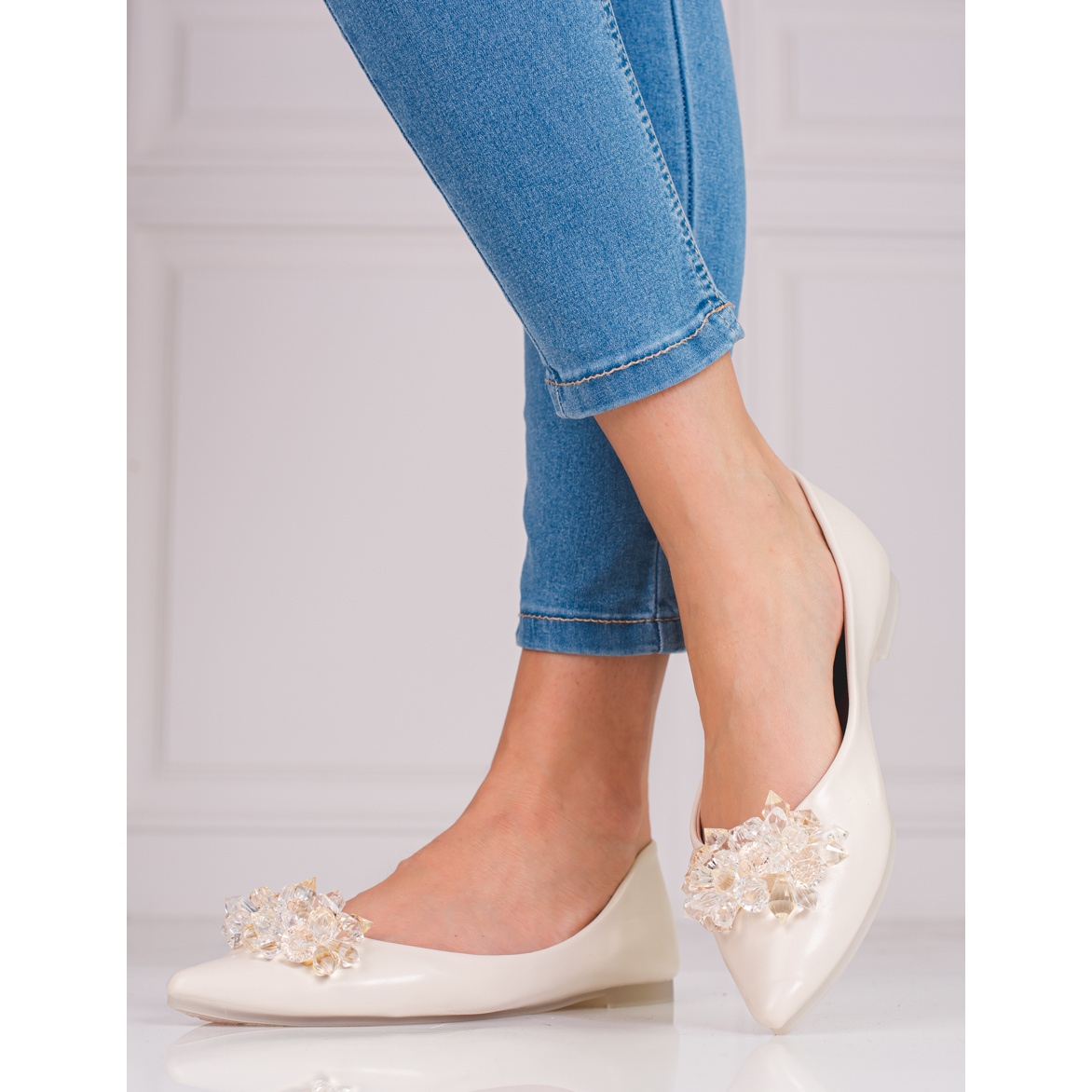 Dambalettlägenheter med kristaller från SHELOVET är ett utmärkt val för kvinnor som värdesätter elegans och komfort i vardagsbruk. I den beige versionen passar dessa vackra skor perfekt in i vår-sommartrender och kombinerar avslappnad stil med lite klassiskt och elegans.