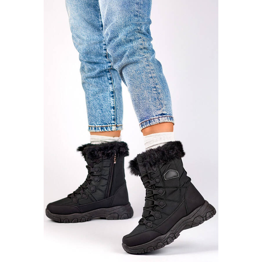 Detaljer: Damisolerade snöstövlar med päls, svart 9093B