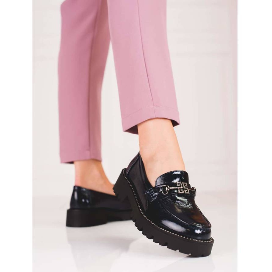 Vi presenterar damlackade mockasiner med tjock sula från märket Shelovet i en elegant marinblå färg. Dessa fashionabla skor är en perfekt kombination av klassisk och modern stil, perfekt för både vardagliga och mer formella tillfällen.
