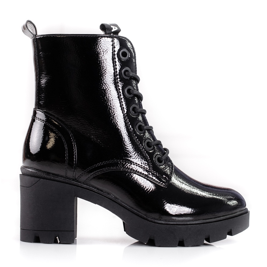 Information: Damlackerade arbetarstövlar på hög klack svart