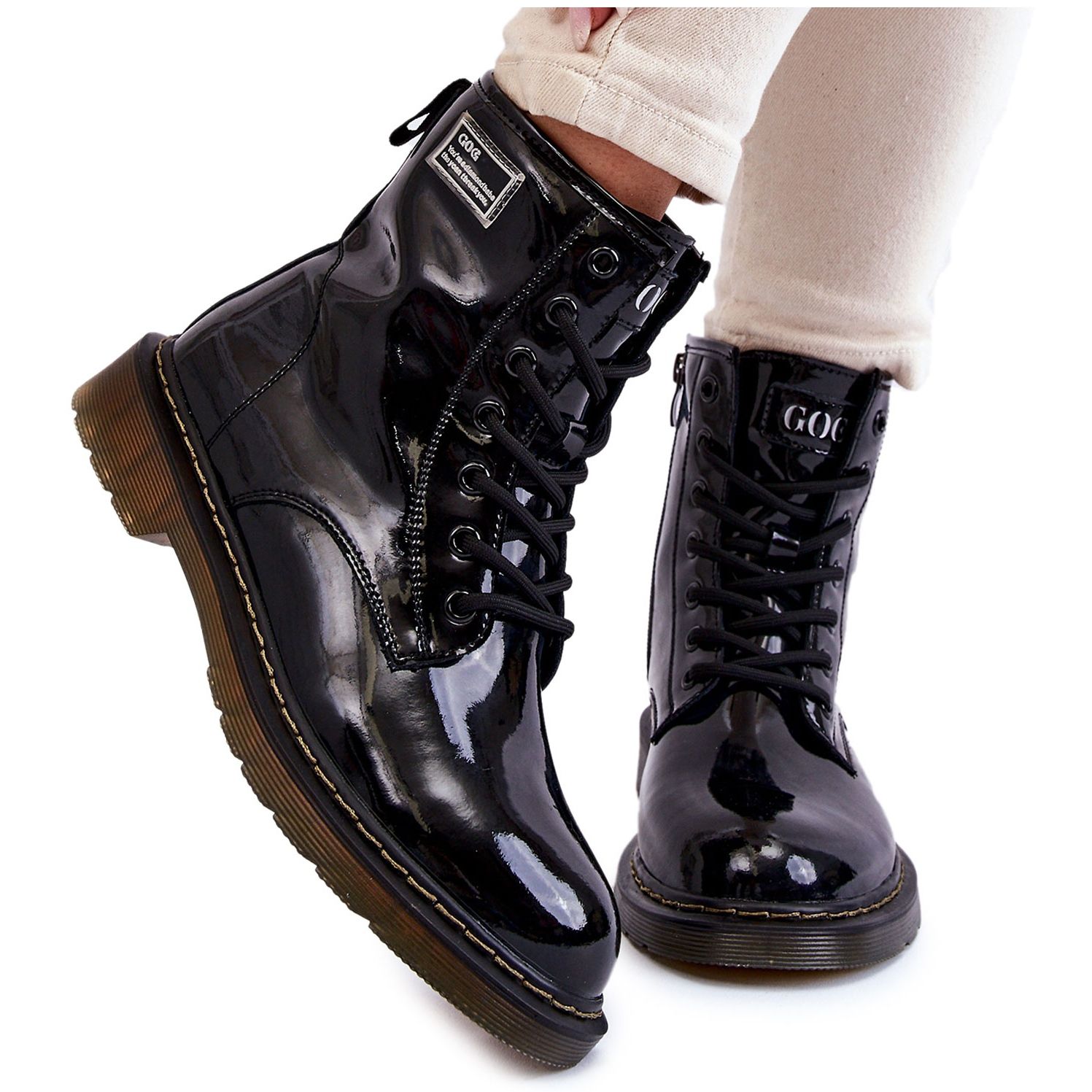 Lackstövlar för kvinnor GOE II2N4050 i svart är det perfekta valet för kvinnor som värdesätter kombinationen av elegans och komfort. Stövlarna är gjorda av högkvalitativt naturligt läder och utmärker sig inte bara genom sin estetiska, lackerade finish, utan också genom sitt gedigna utförande.
