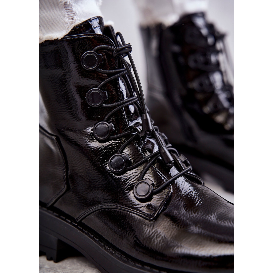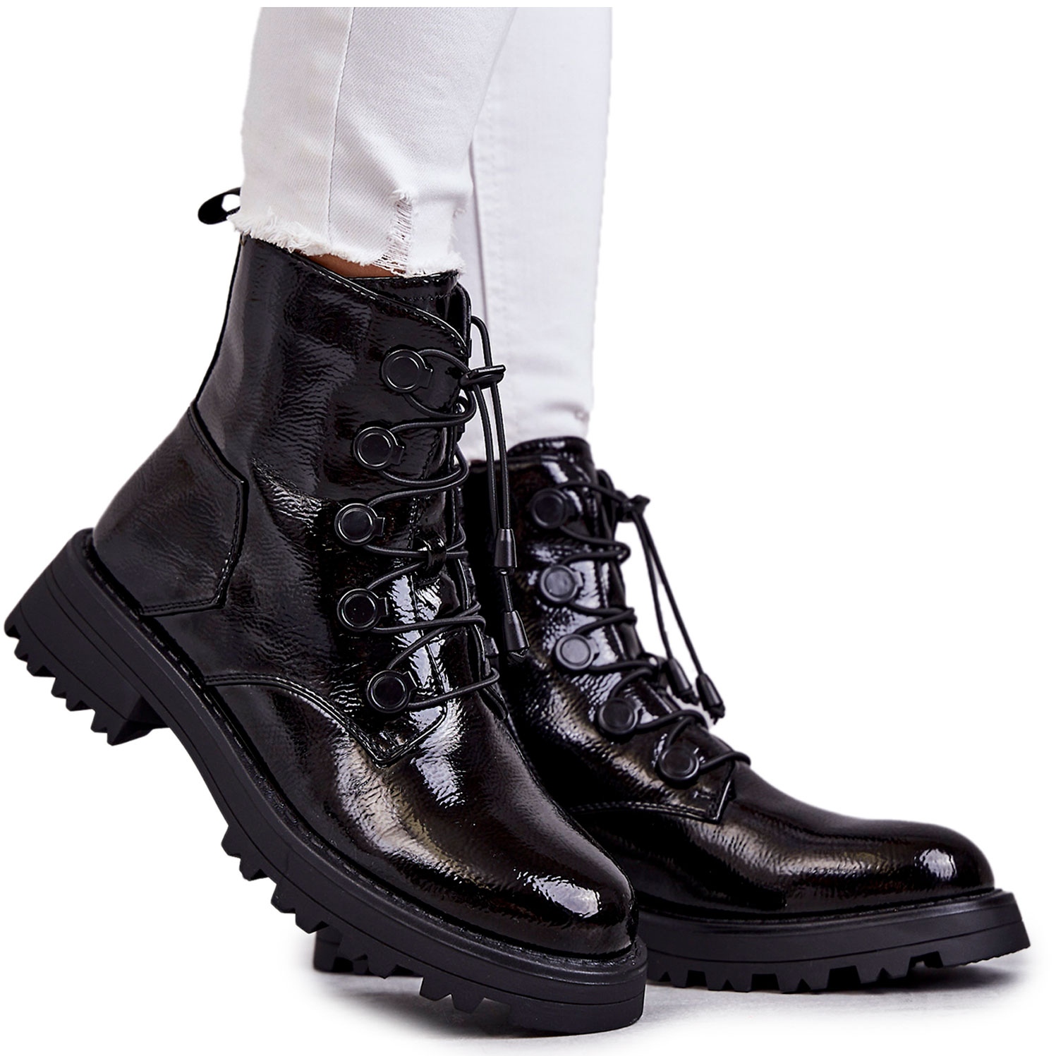 Detaljer: PJ1 Damlackerade varma stövlar med ribbad svart Helia