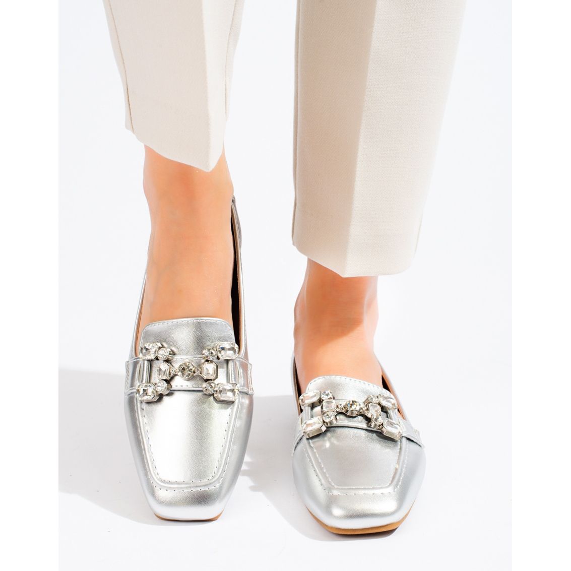 Detaljer: Damloafers i silver med Shelovet-utsmyckning
