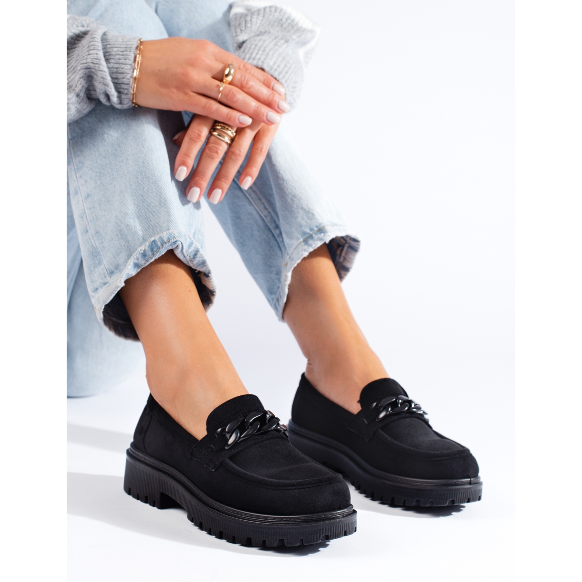 Elegant, bekväm och stilren - det här är tre ord för att beskriva mockasiner i svart mocka för kvinnor från Shelovet, som är ett utmärkt val för kvinnor som värdesätter kombinationen av modern design och komfort att bära.