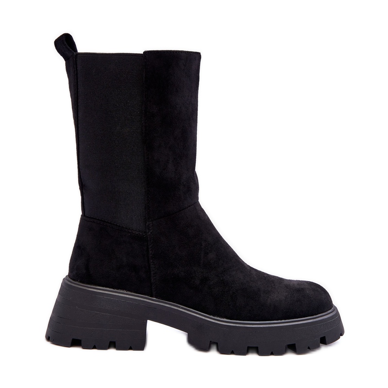 Genom att fästa dessa stövlar kan du njuta av varmare dagar tack vare den isolerade pälsinsatsen. Denna modell, tack vare sin universella estetik och brist på mönster, passar perfekt med en mängd olika stilar - från avslappnad till elegant. Den övre höjden på 22 cm och bredden på 13,5 cm gör att den passar perfekt runt vaden, vilket framhäver kvinnofiguren.