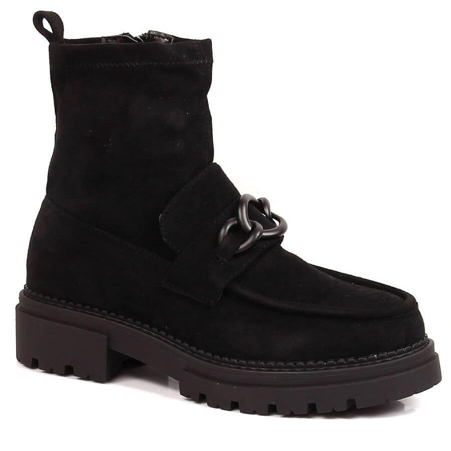 - Universal Design: Classic Black Colors och en subtil kedja gör att skorna matchar både jeans och kappa, samt mer feisty stilar med läderelement.