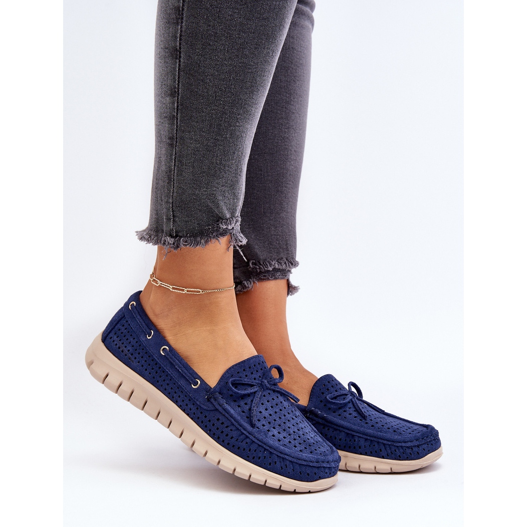 Vinceza kvinnors loafers med en marinblå båge är ett bra förslag för vår-sommarsäsongen och kombinerar elegans med komfort. Tillverkade av ekologiska mocka är dessa öppna arbetslipare ett bra komplement till varje sommarstylisering, vilket ger den en sofistikerad karaktär.