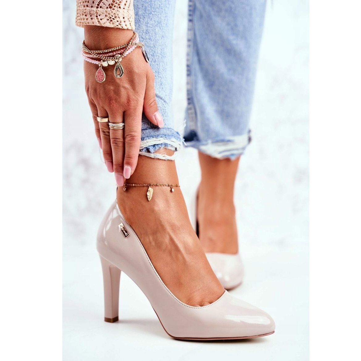 Sergio Leone dampumps i en ljusgrå nyans är det perfekta valet för varje elegant kvinna. Dessa lackskor njuter av sitt klassiska snitt och mandeltå, vilket gör dem extremt snygga och feminina. Baserat på en stabil, medelhög stolpe med en höjd på 9 cm, ger de komfort och självförtroende när de bärs, oavsett tillfälle.