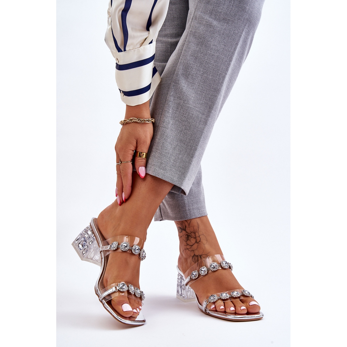 S.Barski Leyla flipflops för kvinnor i silver är ett elegant och moderiktigt val för vår- och sommardagar. Tillverkade av högkvalitativ plast och ekologiskt läder, de kombinerar stil och komfort. Modellen är monterad på en solid blockklack, 5,5 cm hög, vilket säkerställer stabilitet under gång.