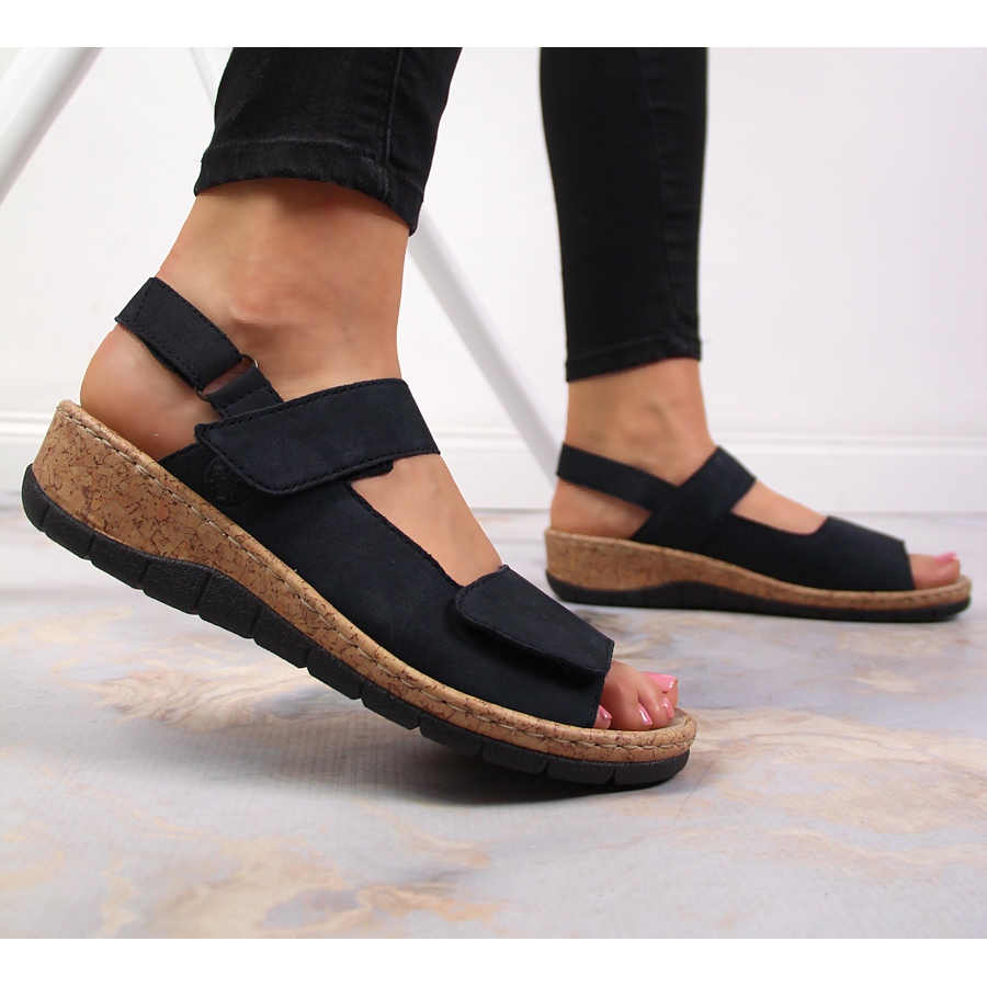 Rieker Damsandaler i läder på kilen Rieker V7170-14 marinblå
